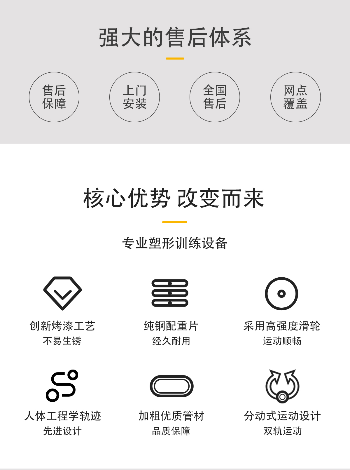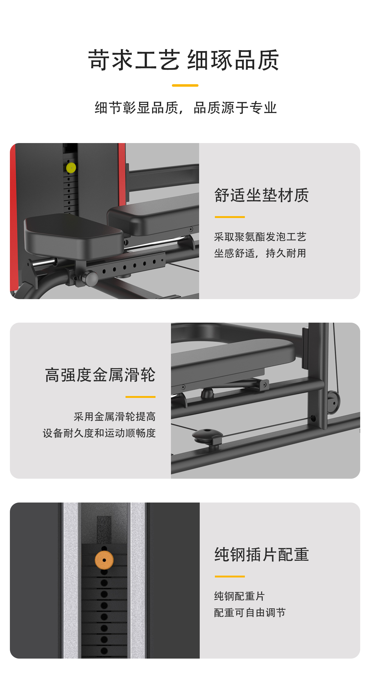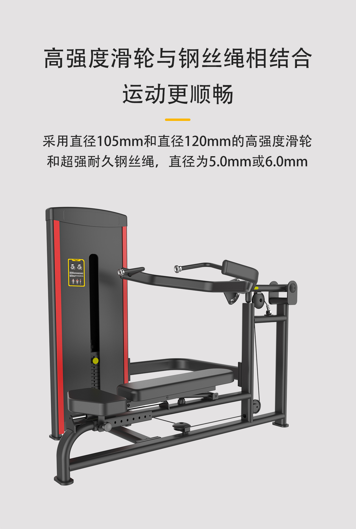 配重采用強(qiáng)磁插銷(xiāo),一次性成型坐墊,高檔優(yōu)質(zhì)滑輪及鋼絲繩