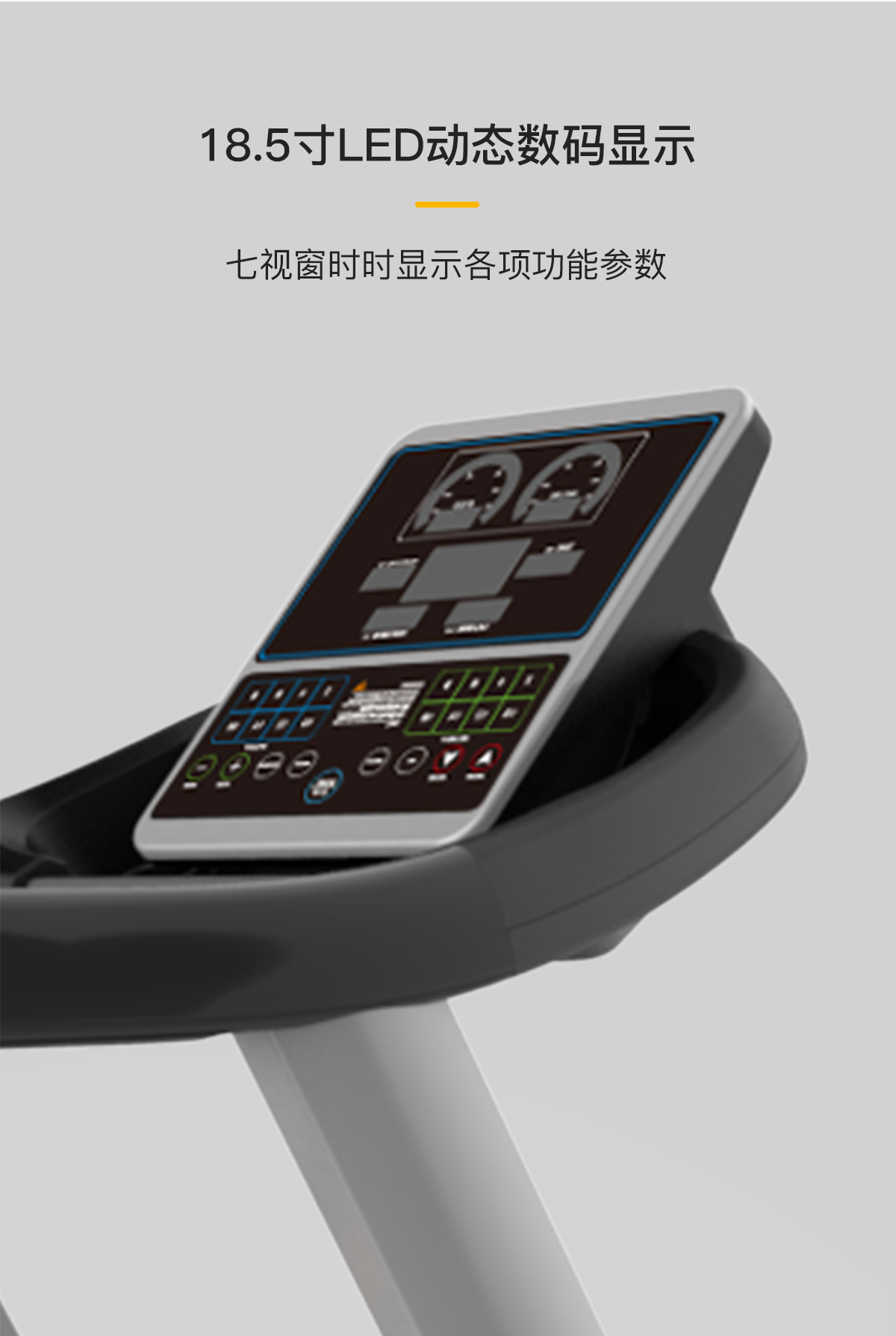 18.5寸LED動(dòng)態(tài)數(shù)碼顯示,速度直選功能,用戶(hù)可自調(diào)時(shí)間,距離,卡路里倒數(shù)模式,自潤(rùn)滑功能