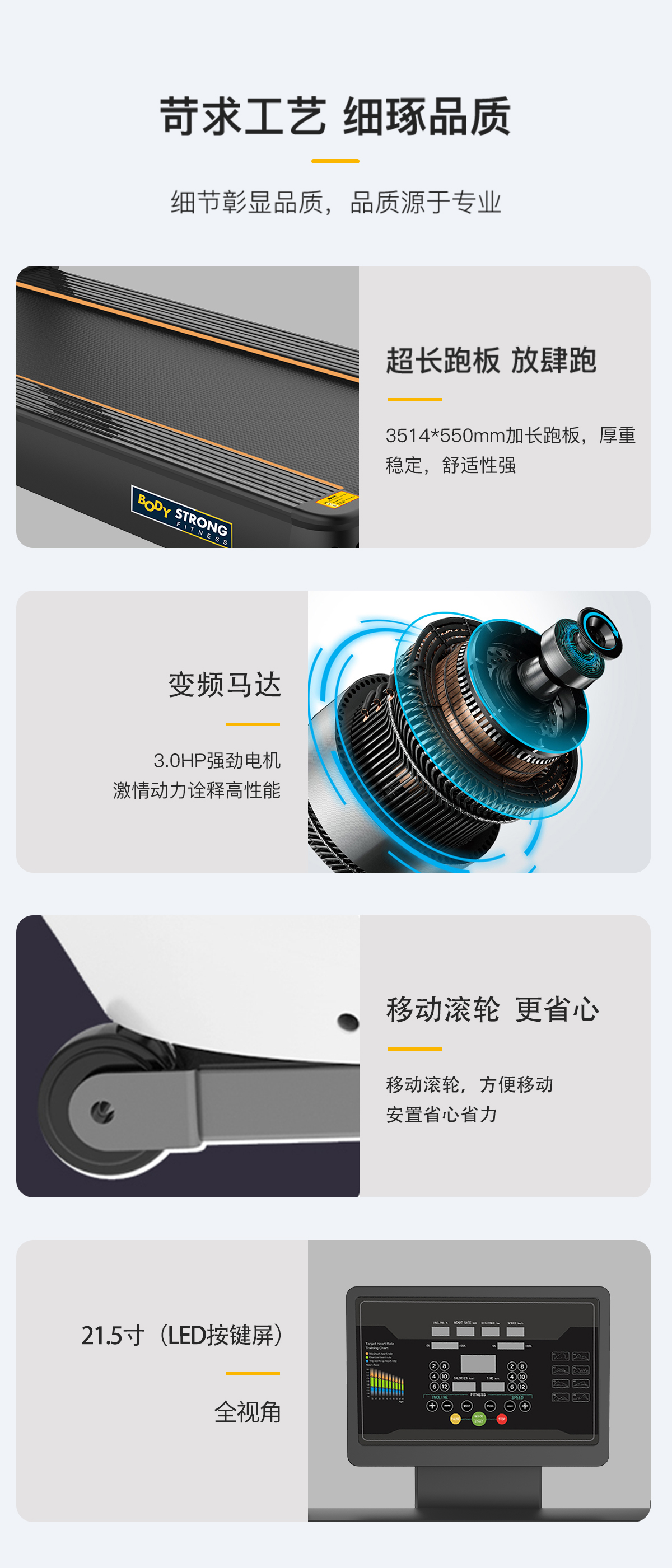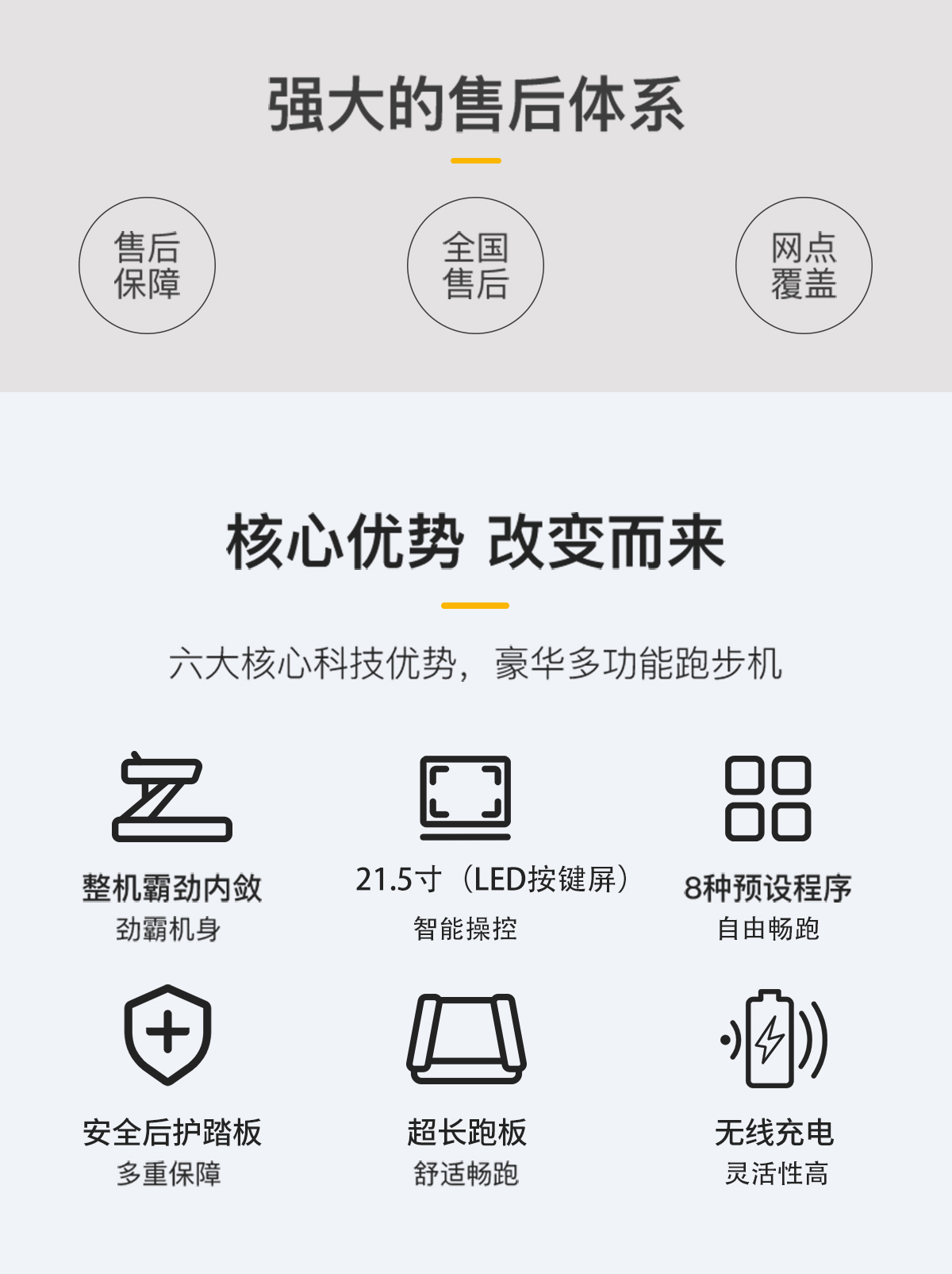 擁有四大產(chǎn)品保險(xiǎn)、8種預(yù)設(shè)程序、超長(zhǎng)跑板、無(wú)線充電、四重減震技術(shù)及自潤(rùn)滑功能